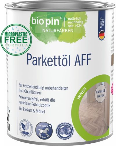 A biopin Parketta keményolaj AFF természetes védőolaj minden fa és parafa padlóhoz, valamint bútorok, ajtók, munkalapok kezeléséhez.